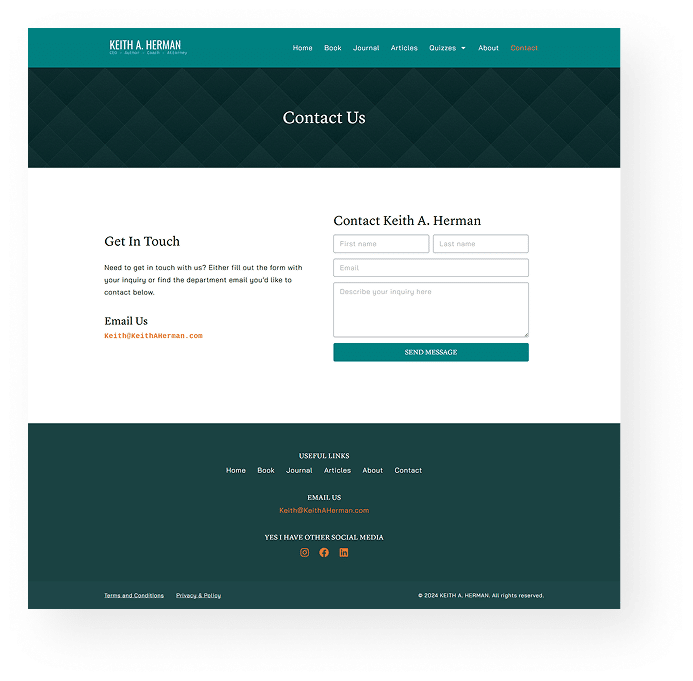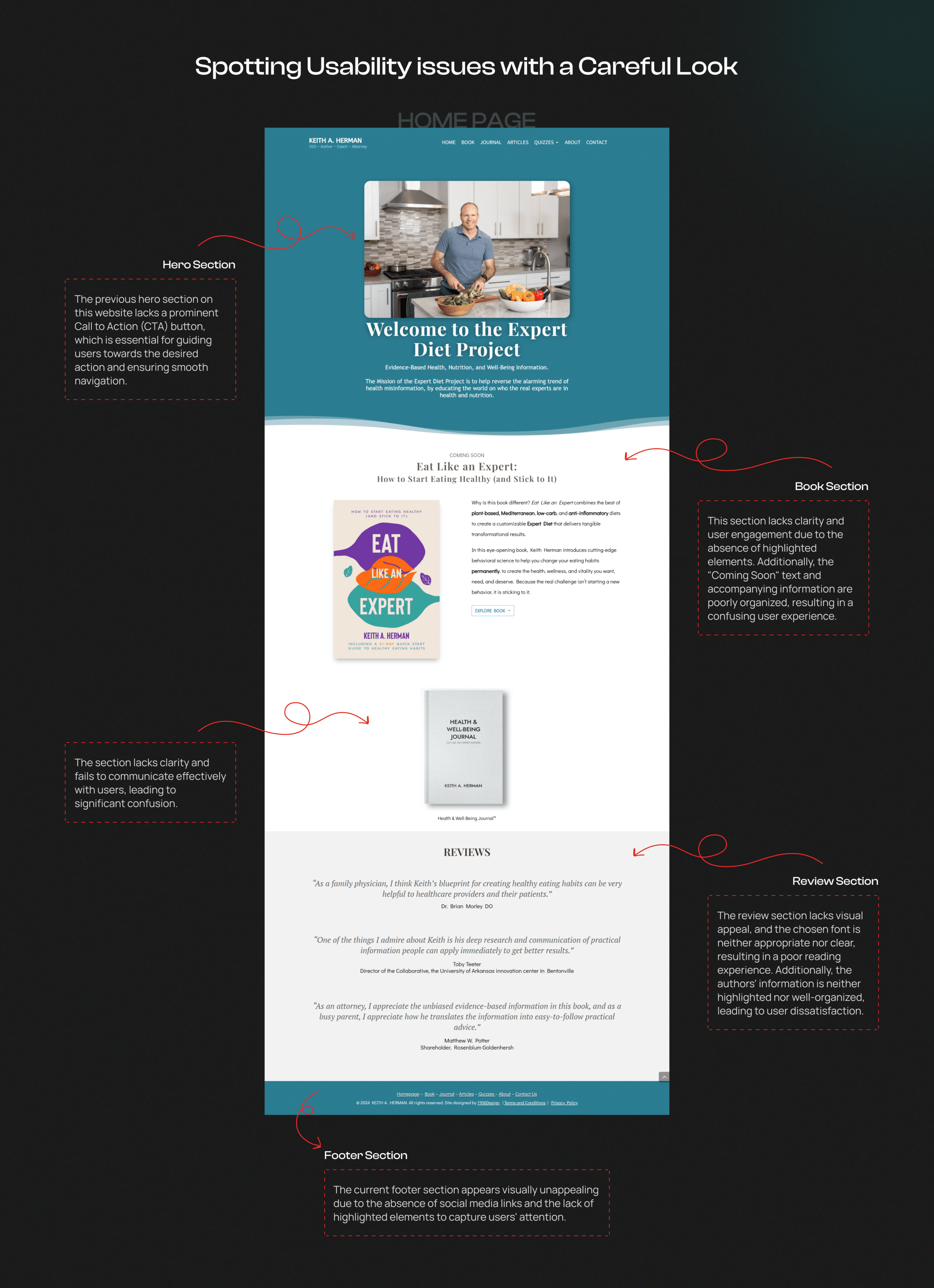 Before the redesign, Keith A. Herman’s website faced several issues that were severely affecting his online presence and user engagement: